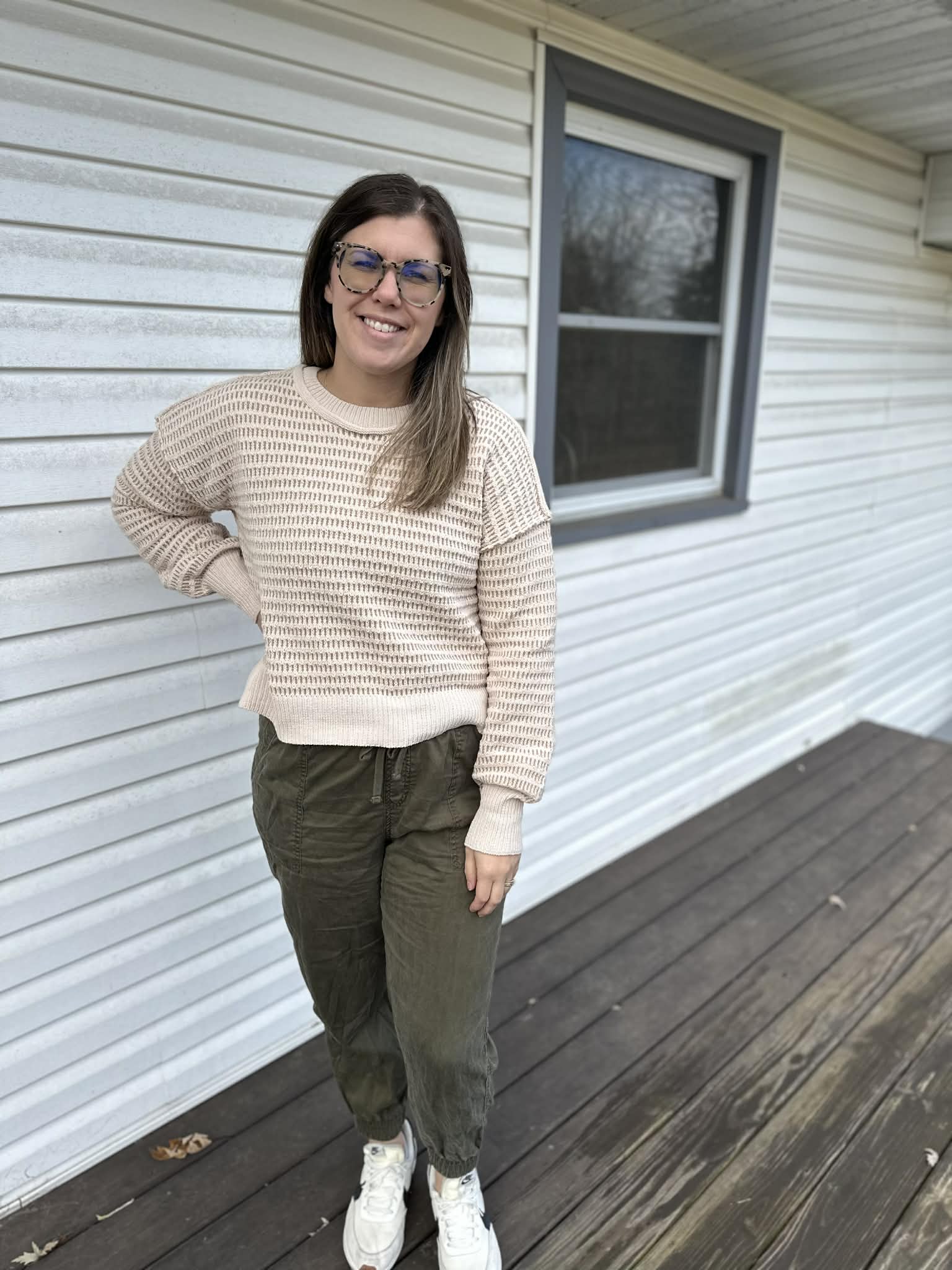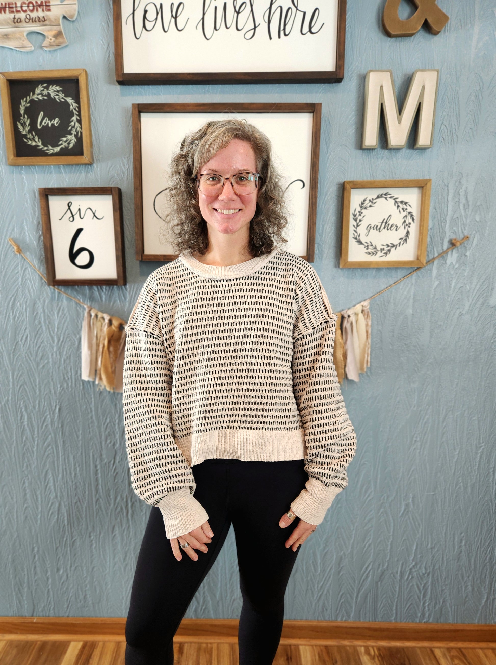 - Two tone textured sweater featuring a side slit, round neck, long sleeves and a slightly oversized fit --- yes please! Sign us up! We are loving these two sweaters and their casual fit for every day where this winter.